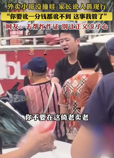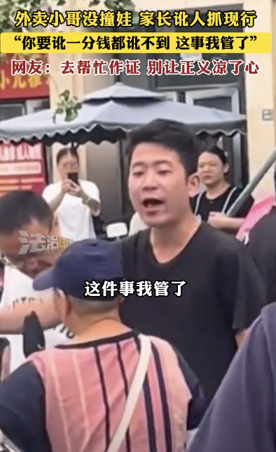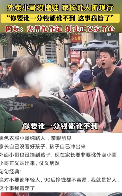 外卖小哥没撞娃 家长讹人被抓现行,男子:你要讹一分钱都讹不到 这事我管了