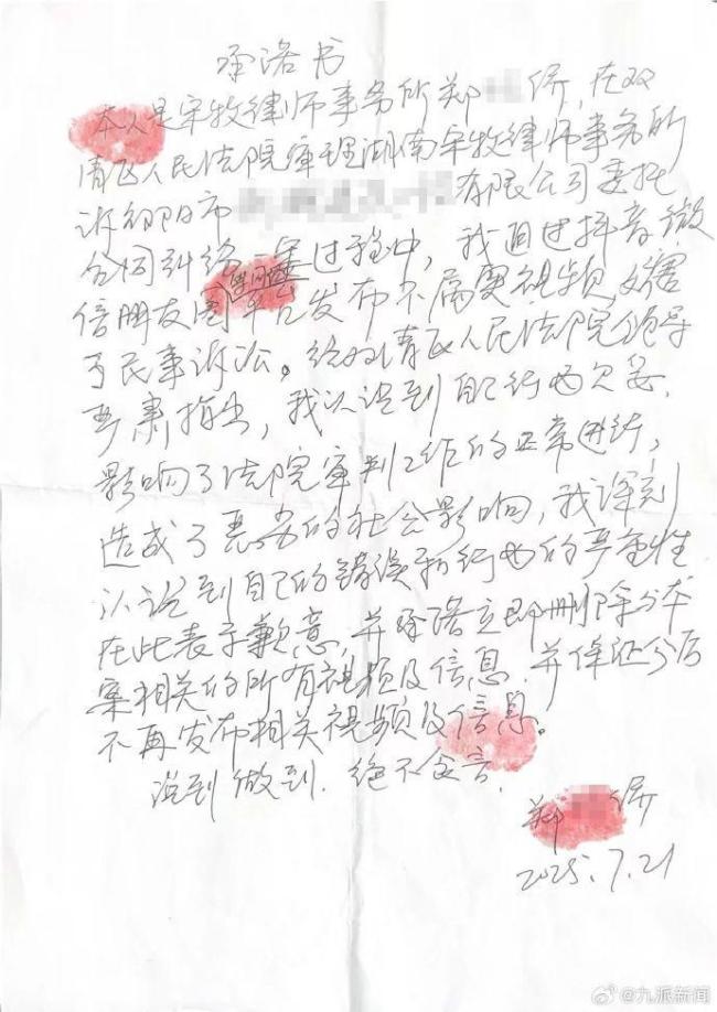 法院通报律师侮辱办案法官 恶意误导舆论受罚。7月21日,湖南省邵阳市双清区人民法院发布声明,指出湖南宋牧律师事务所及该所律师郑某侨在抖音、微博和微信群中持续发布视频,故意歪曲事实,恶意误导舆论,对法院办案法官进行侮辱和诽谤。这些行为严重妨害了民事诉讼,损害了司法权威,并造成了恶劣的社会影响。经过批评教育,郑某侨认识到自己的错误并表示道歉。考虑到他主动删除了不实视频,并承诺不再发布相关视频和信息,法院根据《中华人民共和国民事诉讼法》的相关规定,决定对其罚款5万元。