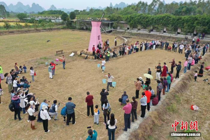 图为民众在田间跳舞。韦蒙玲 摄