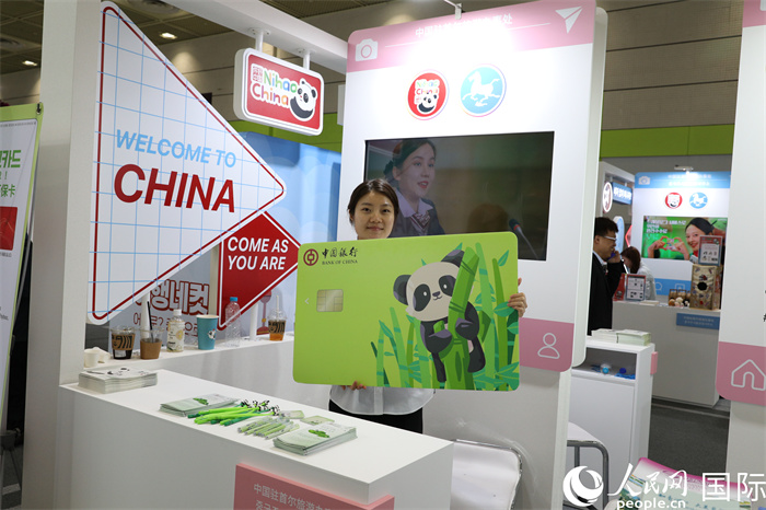 中国银行的展台重点向韩国民众推介该行推出的人民币和韩元双币卡。人民网记者 莽九晨摄