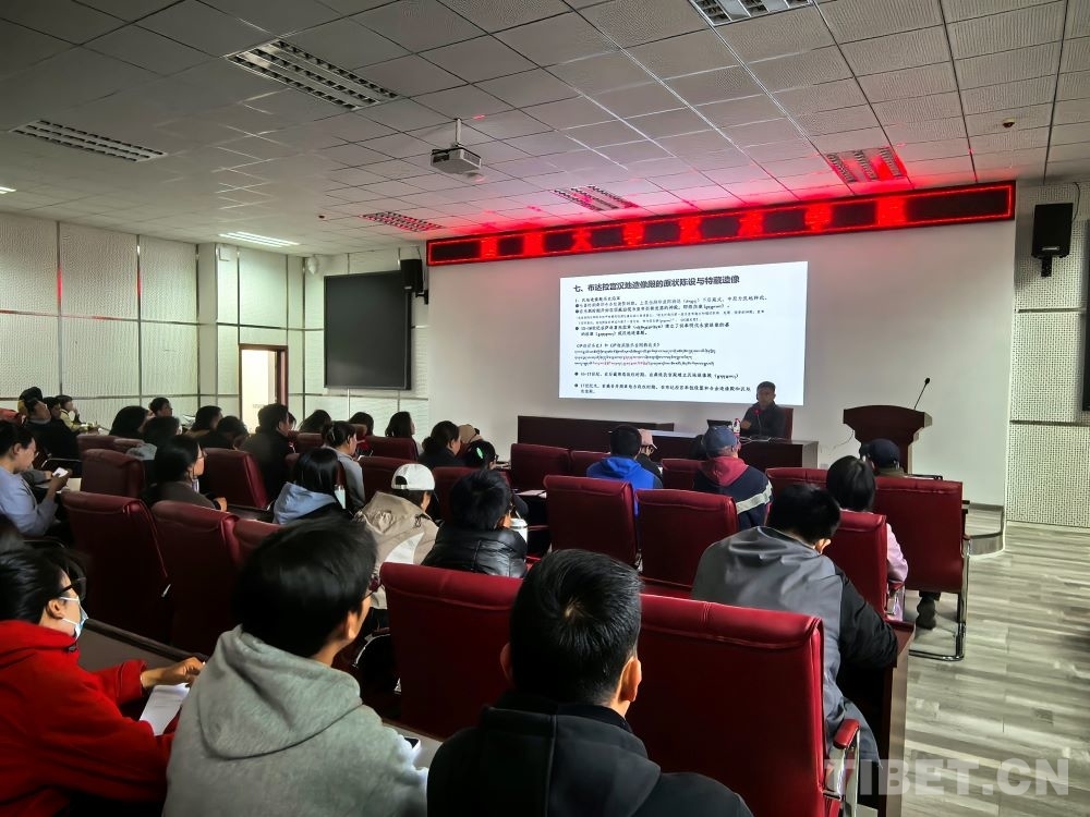 图为布达拉宫文物管理处文物研究室班旦次仁老师在西藏大学艺术学院讲座现场 摄影:王淑