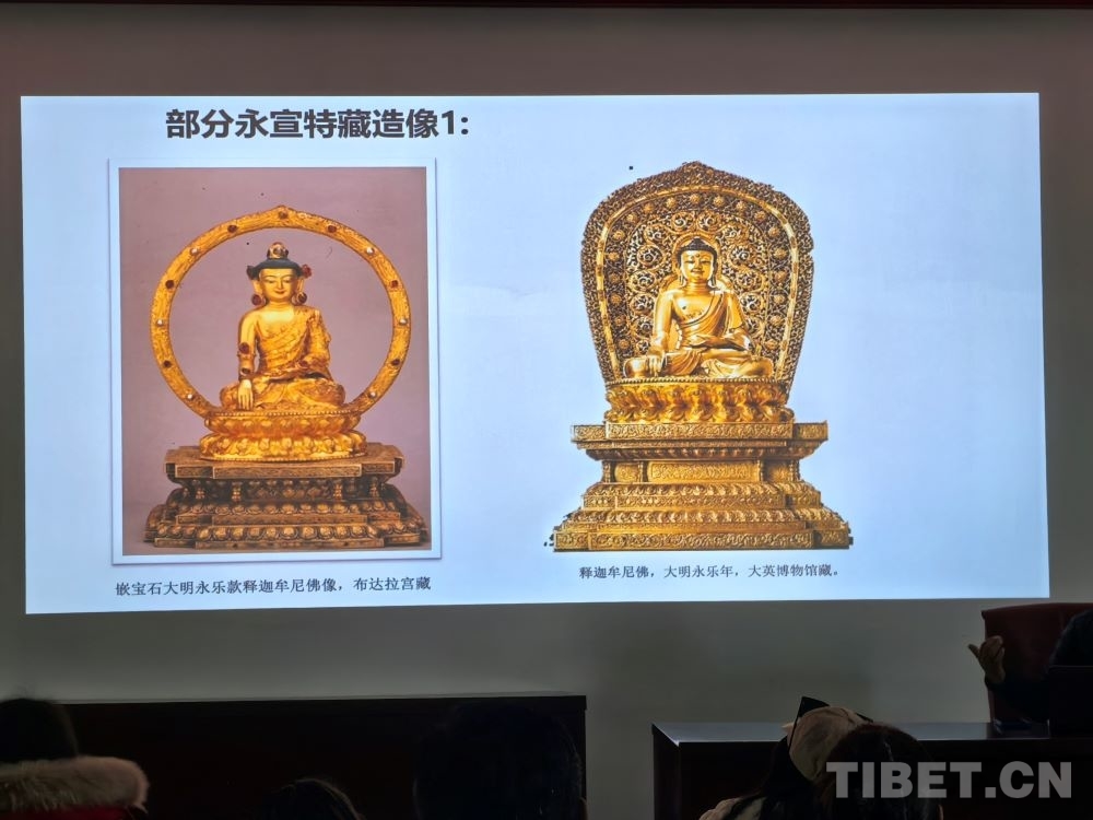 5月8日,在西藏大学艺术学院内,一场题为《布达拉宫馆藏大明永宣款造像相关问题考察——兼谈“汉地造像殿”的复原陈设研究》的讲座吸引了众多学术爱好者。布达拉宫文物管理处文物研究室班旦次仁老师以大量西藏大明永宣款造像为案例,向在场听众介绍了这一时期的佛像如何以媒介的形式增强各民族间的感情。