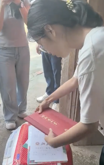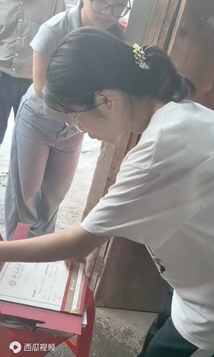 女孩考取北大家中墙贴满奖状 土路迎来北大通知书