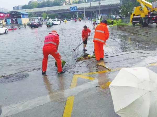 受持续强降雨影响,来凤县城区部分区域出现严重积水,今天中午12点,来凤县防汛抗旱指挥部将防汛应急响应由Ⅲ级调整到Ⅰ级,广大党员干部坚守一线抢险救灾。