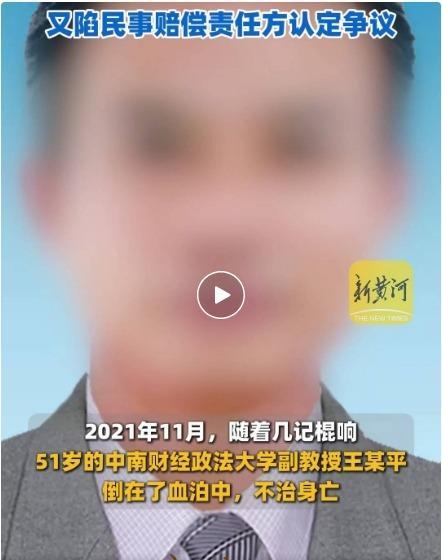 2021年11月,中南财经政法大学副教授王某平在自家附近被他人用条形钝性物体击打头部致死。凶手王某刚经鉴定处于偏执型分裂症发病期,为限制刑事责任能力。案件发生后近四年,围绕民事赔偿问题再次引起关注。