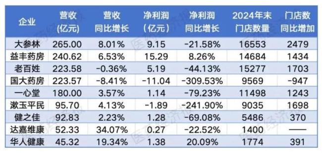 从直营门店医保资质来看,大参林是医保门店数量最多的药店,截至2024年12月底,大参林共10503家直营连锁门店,已取得各类“医疗保险定点零售药店”资格的药店达10093家,其中2024年新增医保门店993家,医保门店总数占公司直营药店总数的96.10%。